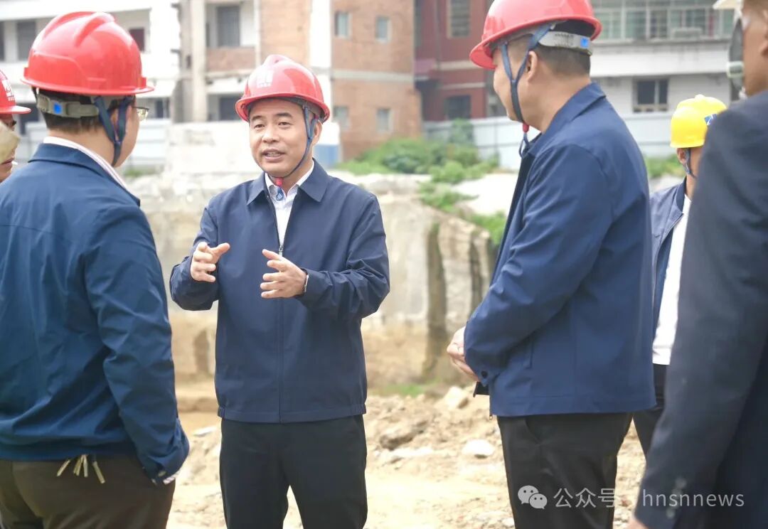 佘芝云一行先后深入大汉二期棚户区改造项目、长坪路边坡项目、民族公园项目、县民政局养老院二期项目、县绿洲中学老旧家属楼及县人民医院内科楼项目现场进行调研。每到一处,他都仔细询问工程推进细节,重点检查施工现场深基坑支护、高边坡防护等安全管理关键环节,并对发现的风险隐患现场交办,明确整改时限与要求。