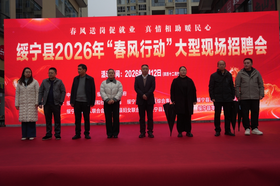 春风送岗促就业真情相助暖民心。2月12日上午,绥宁县2026年“春风行动”大型现场招聘会在绿洲壹号广场顺利举行。本次活动以“春风送岗促就业真情相助暖民心”为主题,聚焦企业用工与群众求职需求,通过送岗位、送信息、送政策、送服务,搭建政企民面对面、零距离对接平台,以供需双赢助力全县经济社会高质量发展。