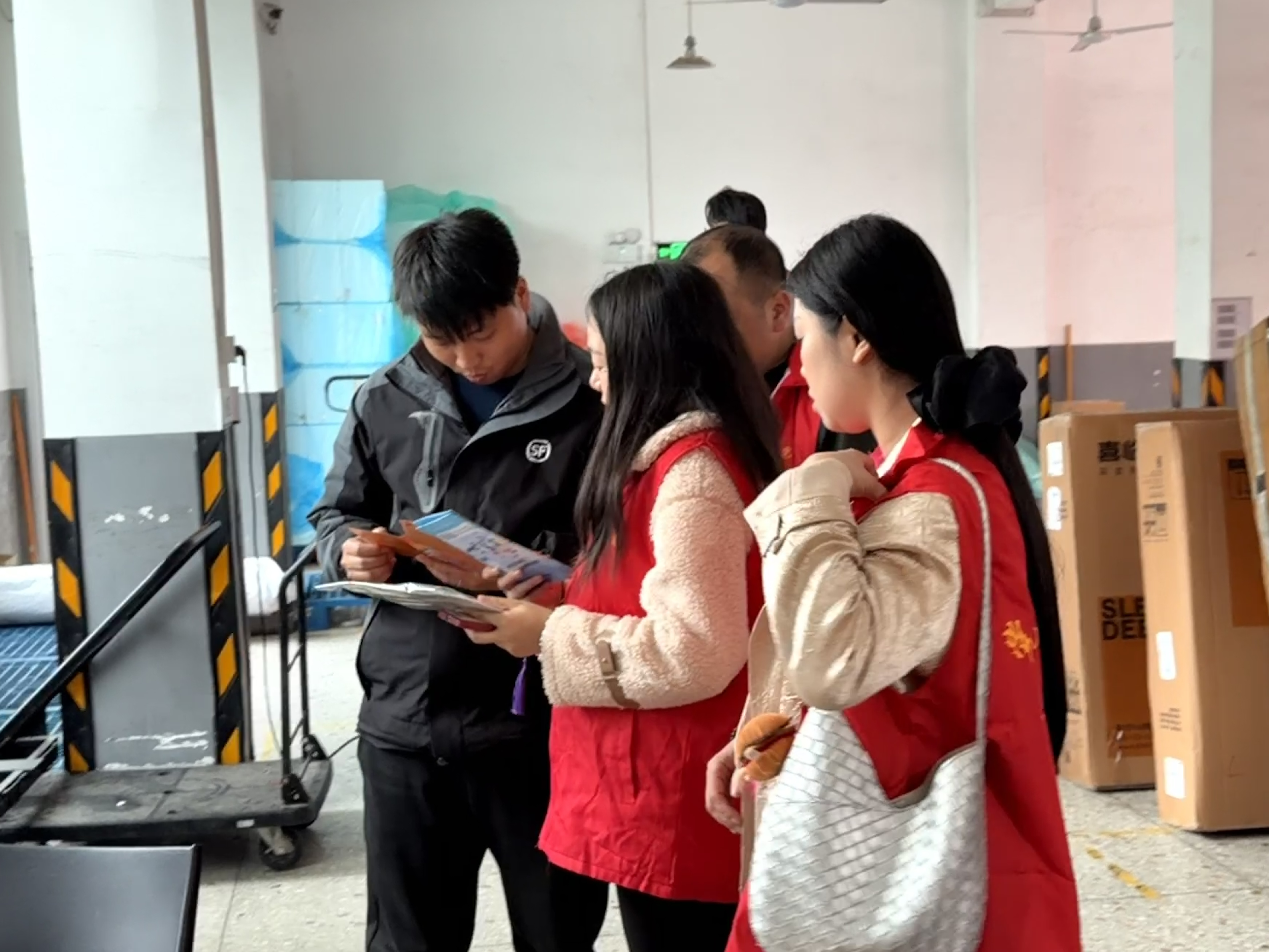 为进一步推动政策落地,绥宁县工伤保险服务中心牵头组建“人社服务小分队”,采取“主场定点+入企走访”相结合的方式,主动下沉一线精准对接需求。小分队先后深入韵达、中通、圆通、顺丰、德邦等多家快递企业,上门宣讲新就业形态人员参保的重要性与必要性,现场发放宣传资料1000余份,确保政策直达企业末端。