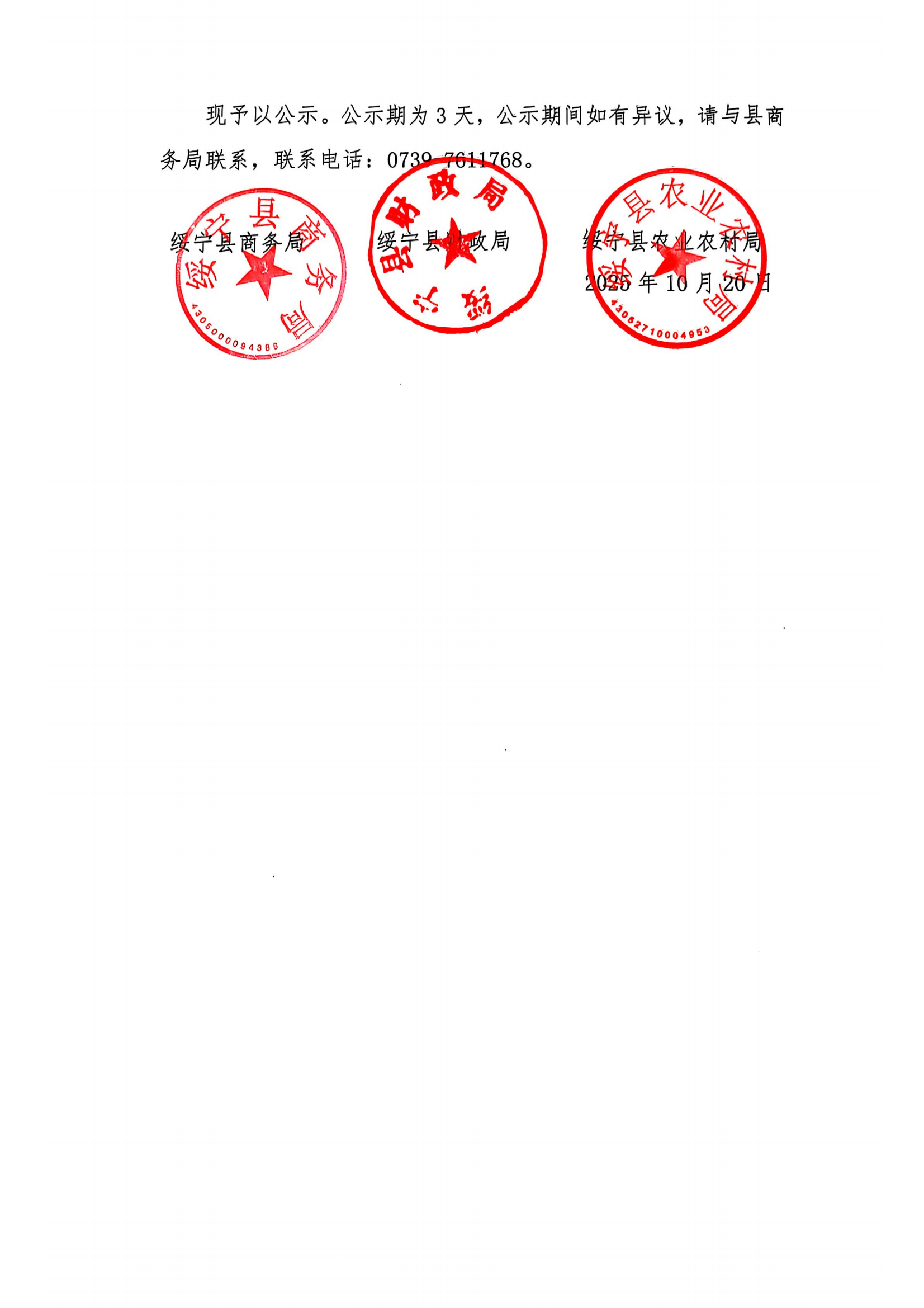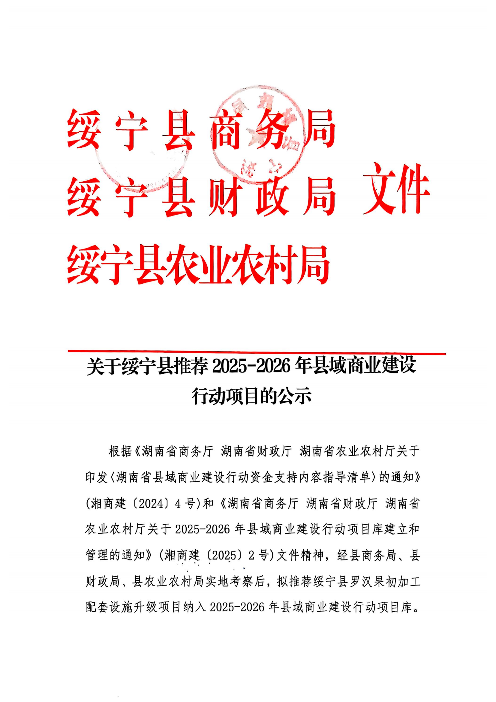 关于绥宁县推荐2025 - 2026年县域商业建设行动项目的公示
