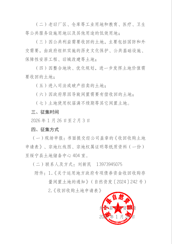 关于运用地方政府专项债券资金收回收购存量闲置土地的征集公告