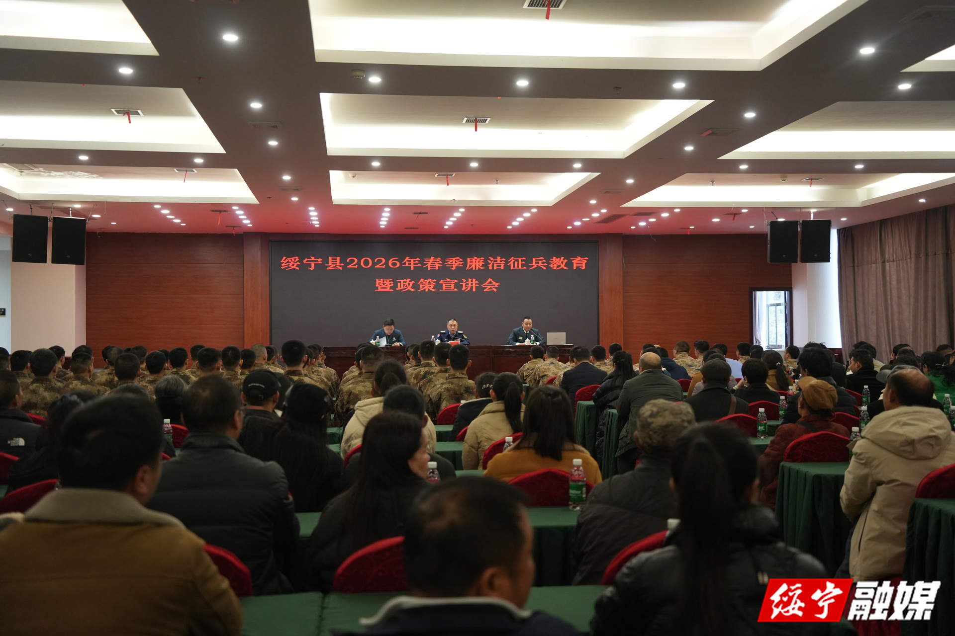 2月28日,绥宁县召开2026年春季廉洁征兵教育暨政策宣讲会。县委常委、县人武部部长熊巍出席会议,县乡两级征兵工作人员、双合格应征青年及家长、县廉洁征兵监督员等相关人员参加。