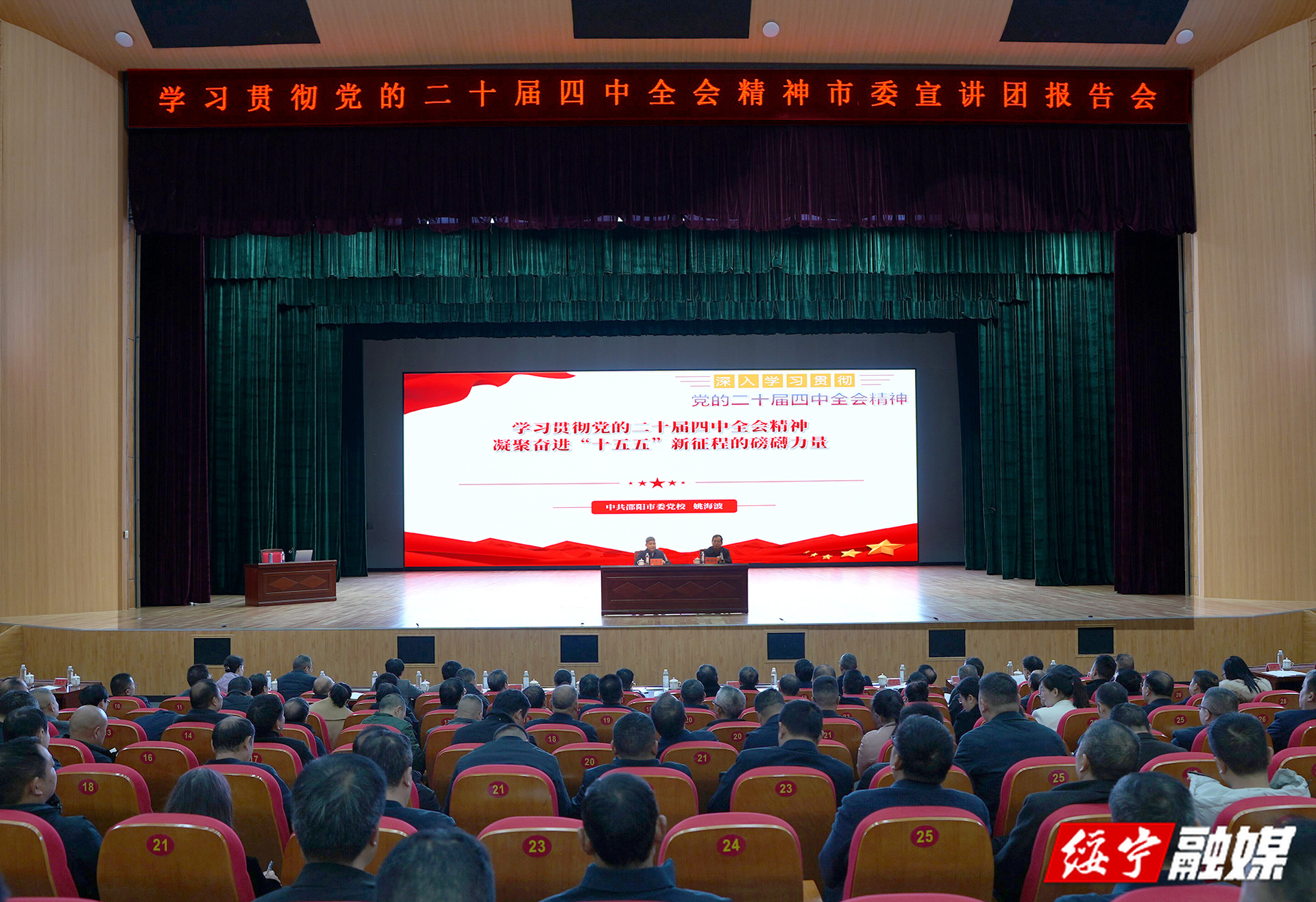 12月4日,学习贯彻党的二十届四中全会精神市委宣讲团报告会在绥宁县举行。市委宣讲团成员、中共邵阳市委党校副校长姚海波作宣讲报告。县委书记佘芝云主持报告会。唐枝、石亮明、袁玲、向国胜、梁恩雄、张立名、尹放平等全体在职市管县级领导,各乡镇党委书记、市属县直单位主要负责人等参加。
