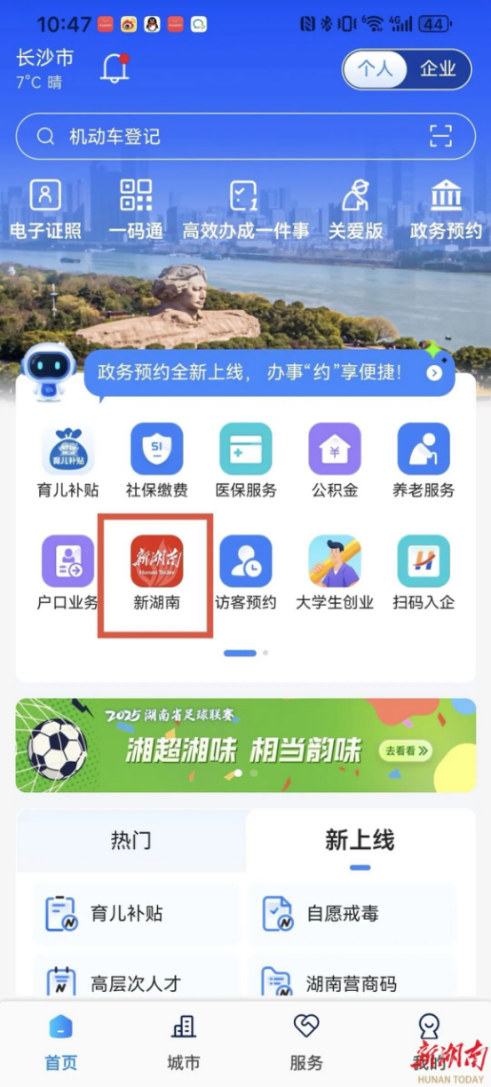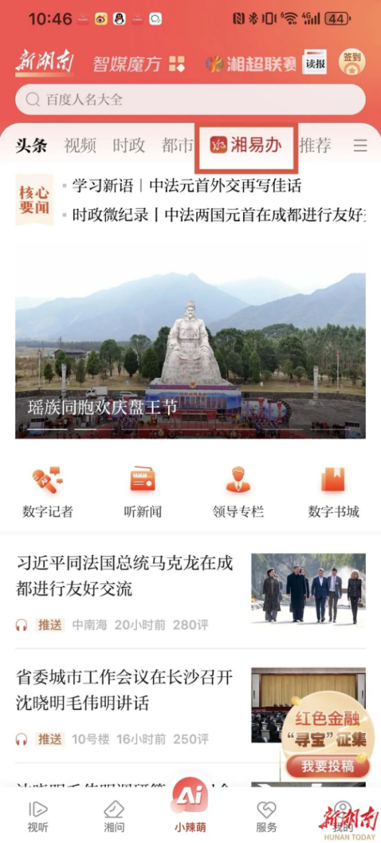“湘易办”首页金刚区已上线新湖南资讯