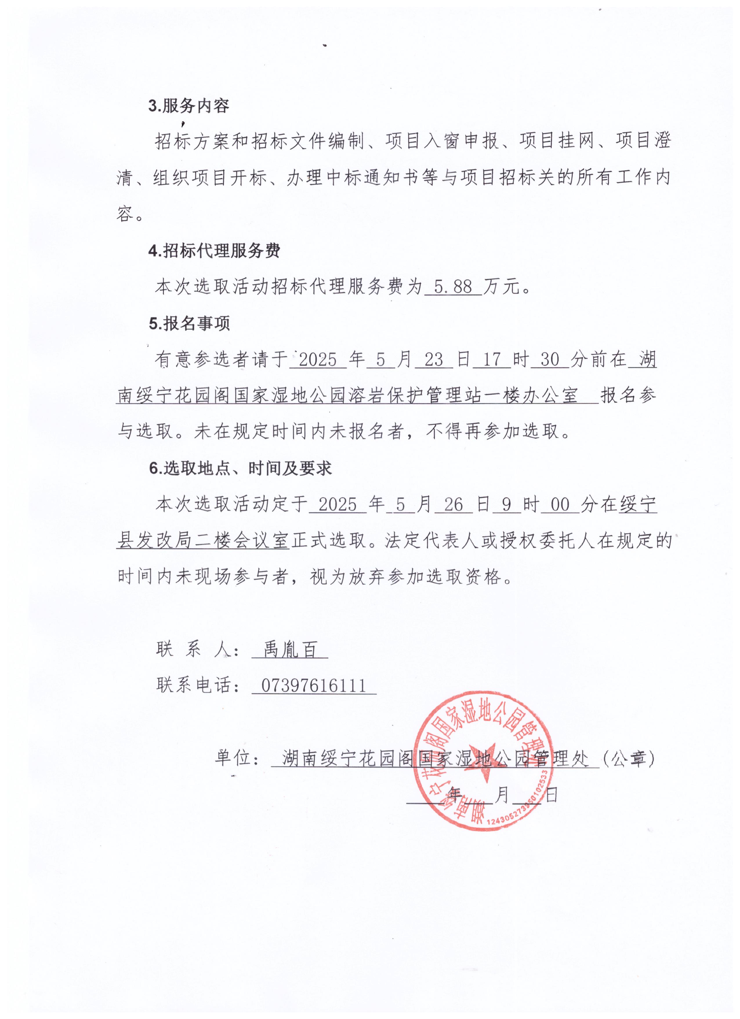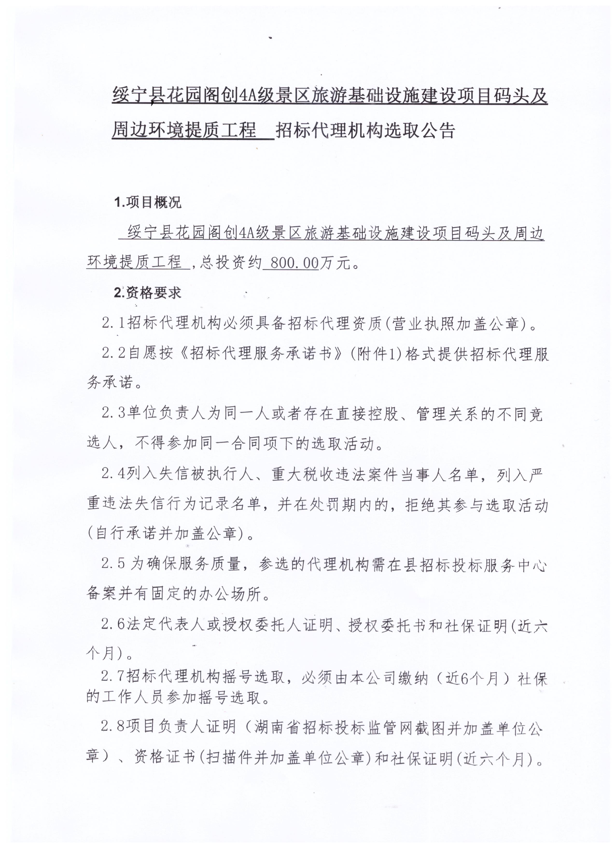 绥宁县花园阁创4A级景区旅游基础设施建设项目码头及周边环境提质工程 招标代理机构选取公告